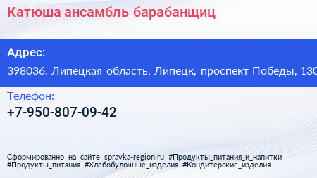 Катюша, ансамбль барабанщиц по адресу 398036, Липецкая область, Липецк, проспект Победы, 130 в дальнейшем Организация, размещена в следующих категориях:
