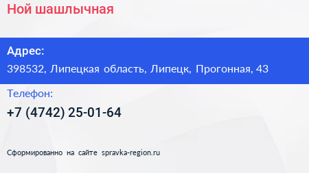 Ной, шашлычная по адресу 398532, Липецкая область, Липецк, Прогонная, 43 в дальнейшем Организация, размещена в следующих категориях: