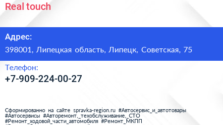 Real touch по адресу 398001, Липецкая область, Липецк, Советская, 75 в дальнейшем Организация, размещена в следующих категориях: