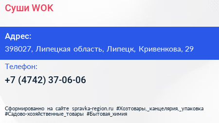 Суши WOK по адресу 398027, Липецкая область, Липецк, Кривенкова, 29 в дальнейшем Организация, размещена в следующих категориях: