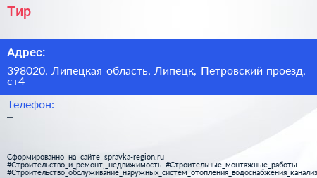 Тир по адресу 398020, Липецкая область, Липецк, Петровский проезд, ст4 в дальнейшем Организация, размещена в следующих категориях: