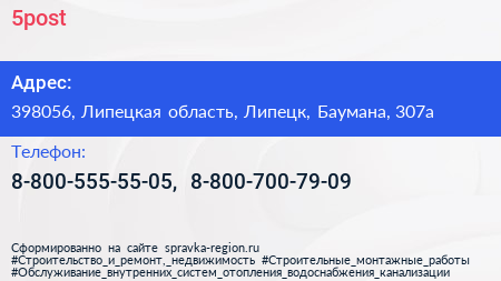 5post по адресу 398056, Липецкая область, Липецк, Баумана, 307а в дальнейшем Организация, размещена в следующих категориях: