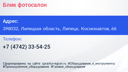 Блик, фотосалон по адресу 398032, Липецкая область, Липецк, Космонавтов, 66 в дальнейшем Организация, размещена в следующих категориях: