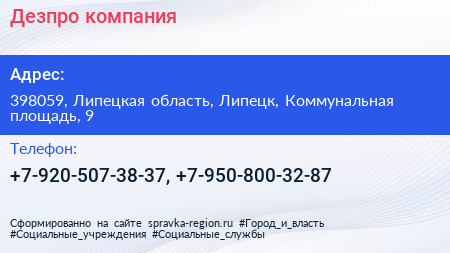 Дезпро, компания по адресу 398059, Липецкая область, Липецк, Коммунальная площадь, 9 в дальнейшем Организация, размещена в следующих категориях: