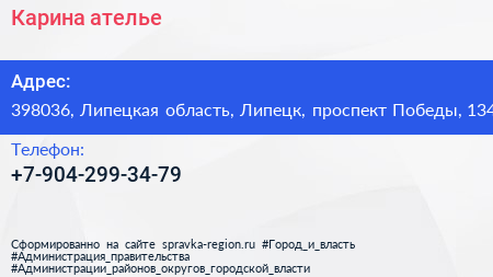 Карина, ателье по адресу 398036, Липецкая область, Липецк, проспект Победы, 134 в дальнейшем Организация, размещена в следующих категориях: