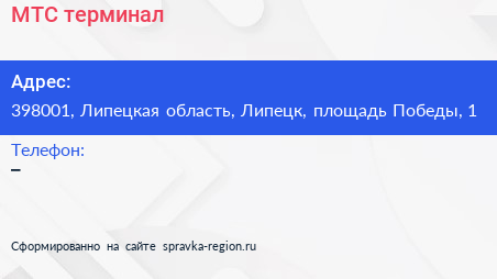 МТС, терминал по адресу 398001, Липецкая область, Липецк, площадь Победы, 1 в дальнейшем Организация, размещена в следующих категориях:
