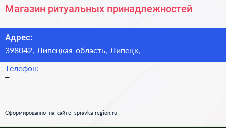 Магазин ритуальных принадлежностей по адресу 398042, Липецкая область, Липецк, в дальнейшем Организация, размещена в следующих категориях: