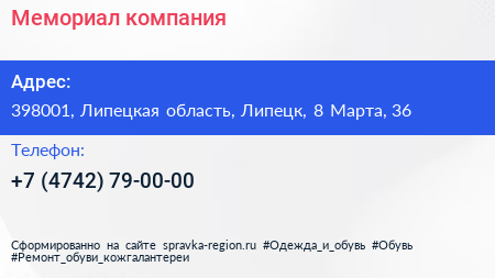 Мемориал, компания по адресу 398001, Липецкая область, Липецк, 8 Марта, 36 в дальнейшем Организация, размещена в следующих категориях: