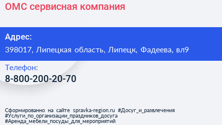 ОМС, сервисная компания по адресу 398017, Липецкая область, Липецк, Фадеева, вл9 в дальнейшем Организация, размещена в следующих категориях: