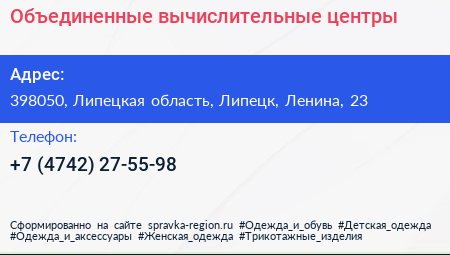 Объединенные вычислительные центры по адресу 398050, Липецкая область, Липецк, Ленина, 23 в дальнейшем Организация, размещена в следующих категориях: