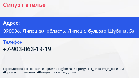 Силуэт, ателье по адресу 398036, Липецкая область, Липецк, бульвар Шубина, 5а в дальнейшем Организация, размещена в следующих категориях: