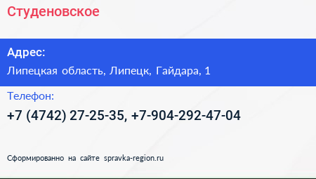 Студеновское по адресу Липецкая область, Липецк, Гайдара, 1 в дальнейшем Организация, размещена в следующих категориях: