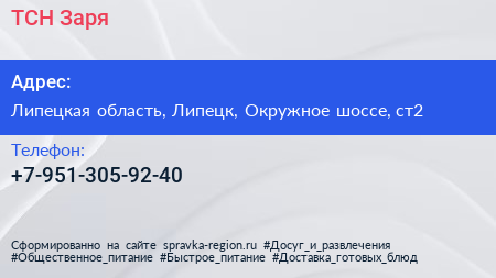 ТСН Заря по адресу Липецкая область, Липецк, Окружное шоссе, ст2 в дальнейшем Организация, размещена в следующих категориях: