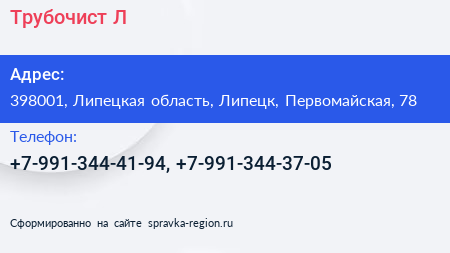 Трубочист-Л по адресу 398001, Липецкая область, Липецк, Первомайская, 78 в дальнейшем Организация, размещена в следующих категориях: