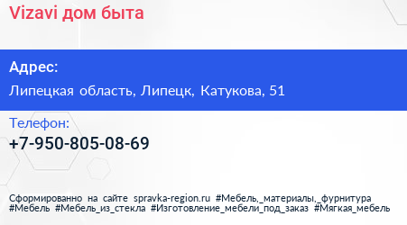 Vizavi, дом быта по адресу Липецкая область, Липецк, Катукова, 51 в дальнейшем Организация, размещена в следующих категориях:
