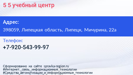 5×5, учебный центр по адресу 398059, Липецкая область, Липецк, Мичурина, 22а в дальнейшем Организация, размещена в следующих категориях: