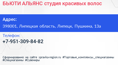 БЬЮТИ АЛЬЯНС, студия красивых волос по адресу 398001, Липецкая область, Липецк, Пушкина, 13а в дальнейшем Организация, размещена в следующих категориях: