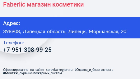 Faberlic, магазин косметики по адресу 398908, Липецкая область, Липецк, Моршанская, 20 в дальнейшем Организация, размещена в следующих категориях: