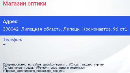 Магазин оптики по адресу 398042, Липецкая область, Липецк, Космонавтов, 96 ст1 в дальнейшем Организация, размещена в следующих категориях: