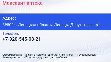Максавит, аптека по адресу 398024, Липецкая область, Липецк, Депутатская, 61 в дальнейшем Организация, размещена в следующих категориях: