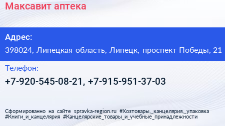 Максавит, аптека по адресу 398024, Липецкая область, Липецк, проспект Победы, 21 в дальнейшем Организация, размещена в следующих категориях: