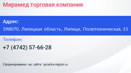 Мирамед, торговая компания по адресу 398070, Липецкая область, Липецк, Политехническая, 15 в дальнейшем Организация, размещена в следующих категориях: