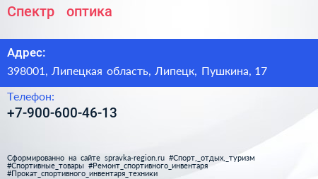 Спектр +, оптика по адресу 398001, Липецкая область, Липецк, Пушкина, 17 в дальнейшем Организация, размещена в следующих категориях: