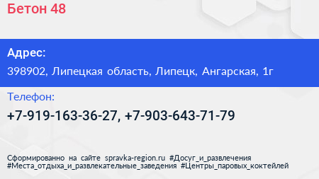 Бетон 48 по адресу 398902, Липецкая область, Липецк, Ангарская, 1г в дальнейшем Организация, размещена в следующих категориях: