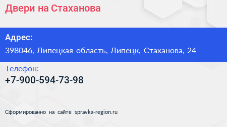 Двери на Стаханова по адресу 398046, Липецкая область, Липецк, Стаханова, 24 в дальнейшем Организация, размещена в следующих категориях: