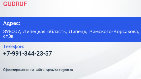 GUDRUF по адресу 398007, Липецкая область, Липецк, Римского-Корсакова, ст3в в дальнейшем Организация, размещена в следующих категориях: