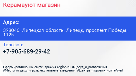 Керамауют, магазин по адресу 398046, Липецкая область, Липецк, проспект Победы, 112Б в дальнейшем Организация, размещена в следующих категориях: