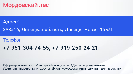 Мордовский лес по адресу 398516, Липецкая область, Липецк, Новая, 15Б/1 в дальнейшем Организация, размещена в следующих категориях: