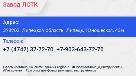 Завод ЛСТК по адресу 398902, Липецкая область, Липецк, Юношеская, 43м в дальнейшем Организация, размещена в следующих категориях:
