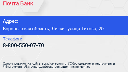 Почта Банк по адресу Воронежская область, Лиски, улица Титова, 20 в дальнейшем Организация, размещена в следующих категориях: