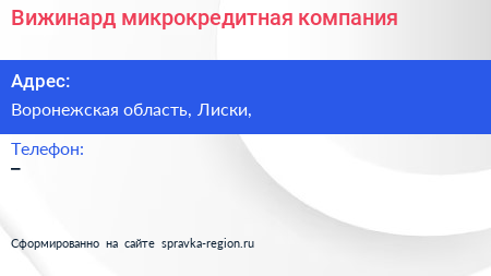 Вижинард, микрокредитная компания по адресу Воронежская область, Лиски, в дальнейшем Организация, размещена в следующих категориях: