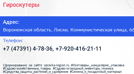 Гироскутеры по адресу Воронежская область, Лиски, Коммунистическая улица, 66 в дальнейшем Организация, размещена в следующих категориях: