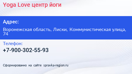 Yoga-Love, центр йоги по адресу Воронежская область, Лиски, Коммунистическая улица, 74 в дальнейшем Организация, размещена в следующих категориях: