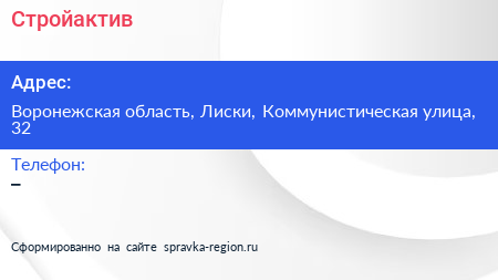 Стройактив по адресу Воронежская область, Лиски, Коммунистическая улица, 32 в дальнейшем Организация, размещена в следующих категориях: