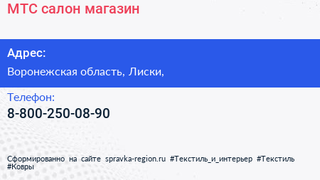 МТС, салон-магазин по адресу Воронежская область, Лиски, в дальнейшем Организация, размещена в следующих категориях: