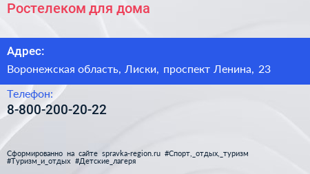 Ростелеком для дома по адресу Воронежская область, Лиски, проспект Ленина, 23 в дальнейшем Организация, размещена в следующих категориях: