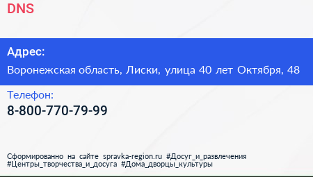 DNS по адресу Воронежская область, Лиски, улица 40 лет Октября, 48 в дальнейшем Организация, размещена в следующих категориях: