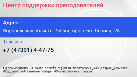Центр поддержки преподователей по адресу Воронежская область, Лиски, проспект Ленина, 28 в дальнейшем Организация, размещена в следующих категориях: