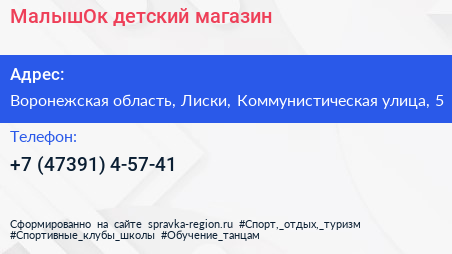 МалышОк, детский магазин по адресу Воронежская область, Лиски, Коммунистическая улица, 5 в дальнейшем Организация, размещена в следующих категориях: