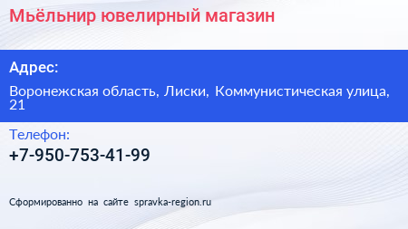 Мьёльнир, ювелирный магазин по адресу Воронежская область, Лиски, Коммунистическая улица, 21 в дальнейшем Организация, размещена в следующих категориях: