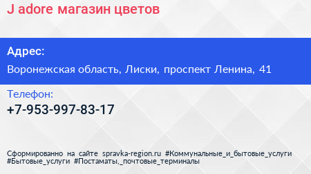 J`adore, магазин цветов по адресу Воронежская область, Лиски, проспект Ленина, 41 в дальнейшем Организация, размещена в следующих категориях:
