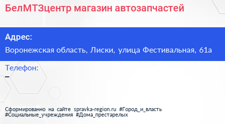 БелМТЗцентр, магазин автозапчастей по адресу Воронежская область, Лиски, улица Фестивальная, 61а в дальнейшем Организация, размещена в следующих категориях: