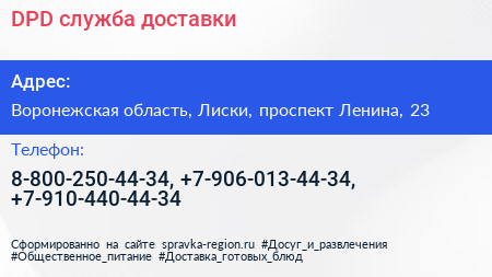 DPD, служба доставки по адресу Воронежская область, Лиски, проспект Ленина, 23 в дальнейшем Организация, размещена в следующих категориях: