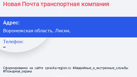 Новая Почта, транспортная компания по адресу Воронежская область, Лиски, в дальнейшем Организация, размещена в следующих категориях: