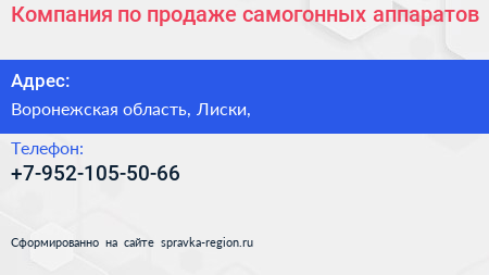 Компания по продаже самогонных аппаратов по адресу Воронежская область, Лиски, в дальнейшем Организация, размещена в следующих категориях: