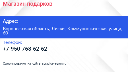 Магазин подарков по адресу Воронежская область, Лиски, Коммунистическая улица, 60 в дальнейшем Организация, размещена в следующих категориях: